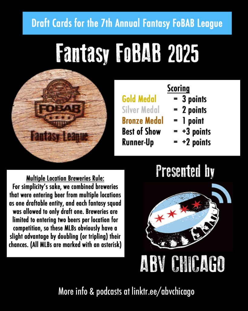 With the Festival of Wood and Barrel-aged Beers returning this weekend for the 23rd time and the awards set for Saturday afternoon (which you can stream from the FoBAB website at 2PM), we will be in attendance with our scoresheets in hand to see who will win the 7th Annual ABV Chicago Fantasy FoBAB League.