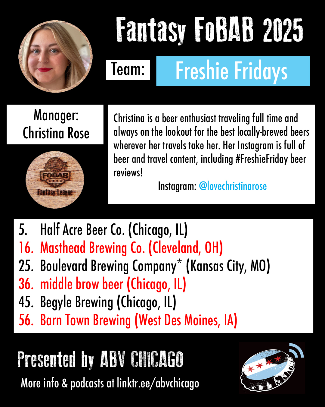 ABV Chicago’s Fantasy FoBAB League: 2025 Draft Results