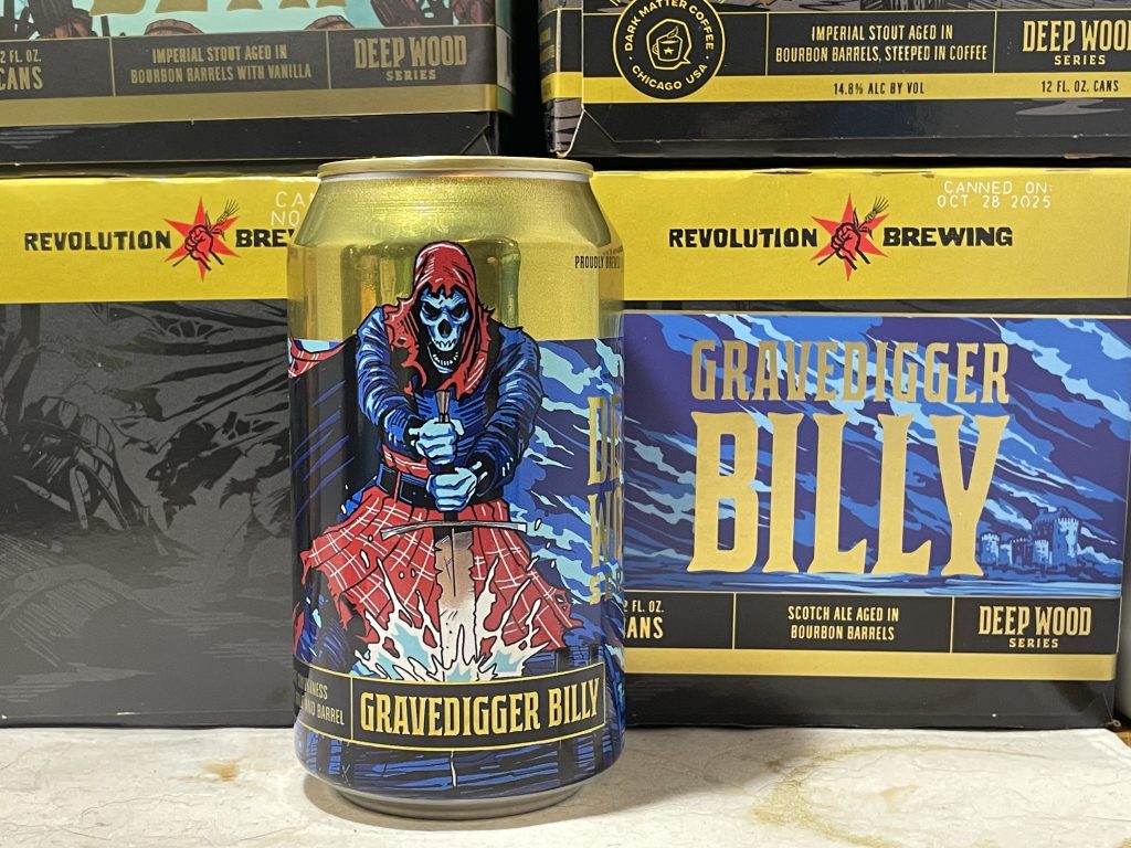 A semi-regular release, Gravedigger Billy returns for the first time under the new can art and, boy, is it awesome. Gravedigger Billy was first released in bombers back in the day (2014 it appears) and shows up sporadically. Surprisingly, Revolution released V.S.O. Gravedigger in April 2023 during the Deep Wood off-season (and that beer was delicious). Let’s see how Gravedigger Billy stacks up.